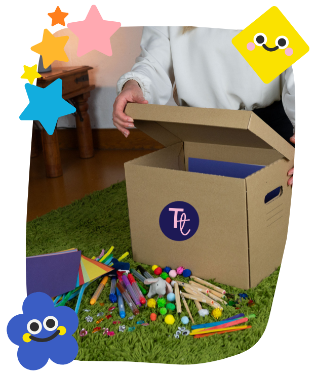 Our Treasure Time Play Box is packed with therapist-approved toys and creative materials to spark imagination and connection.